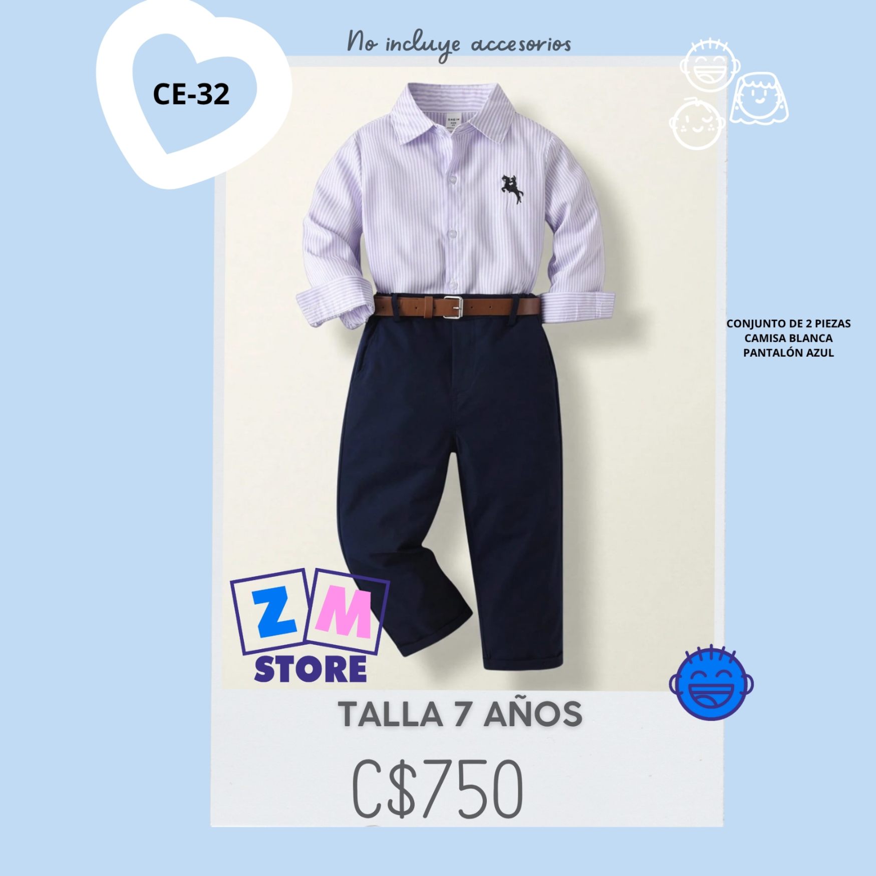 Conjunto de Camisa blanca a rayas, pantalón azul - CE-32 cantidad