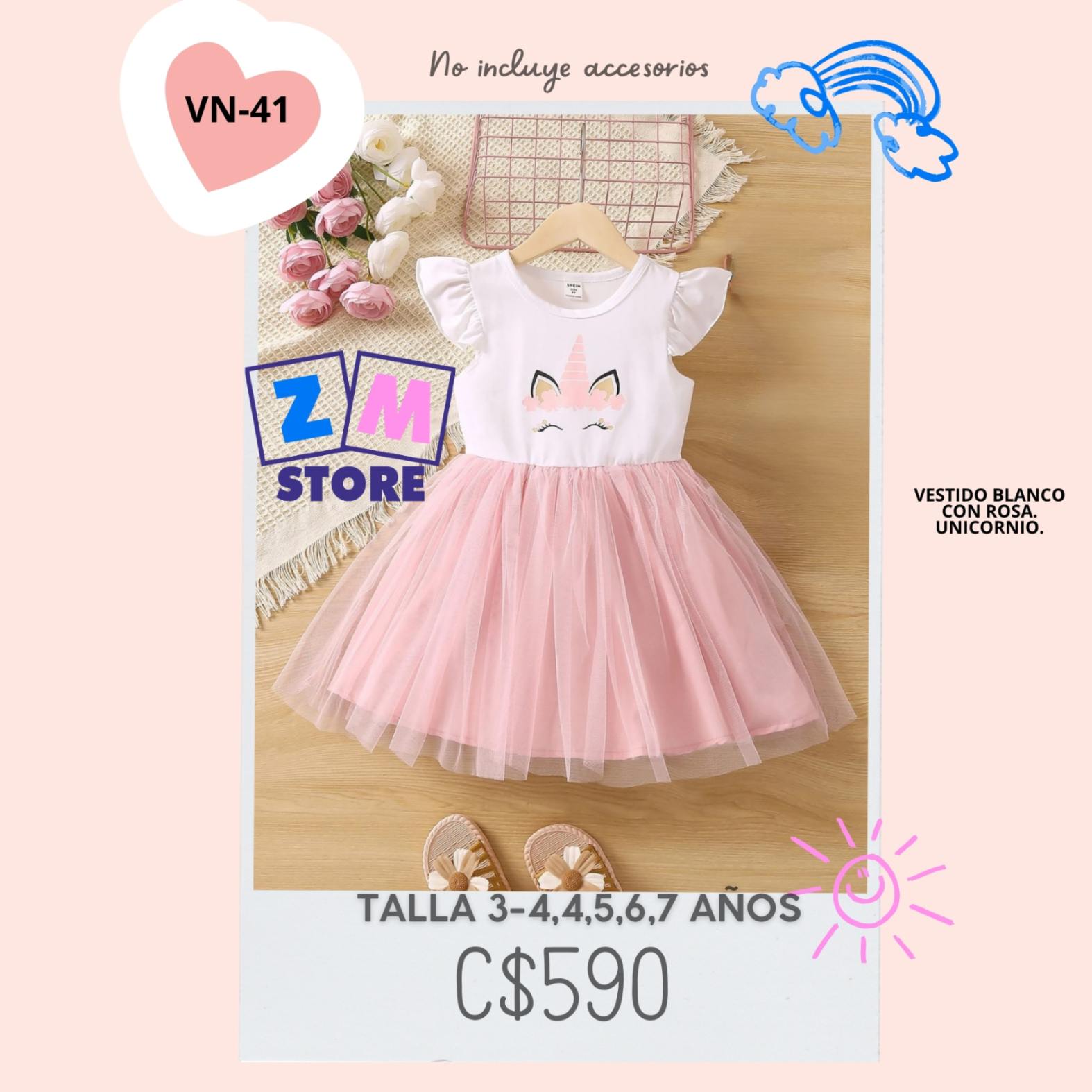 Vestido rosa con diseño de unicornio -- VN-41 cantidad